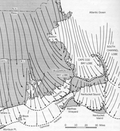 around and on Cape Cod. Along the coastline ice moved faster on one side